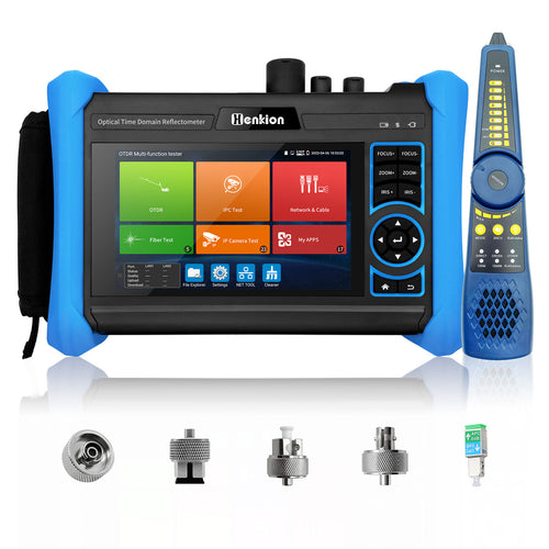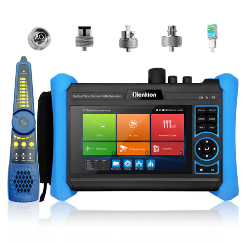 OTDR multi-function tester integrating OTDR test, event map, LS, OLS, OPM, VLS, 8K IPC test, cable test, cable tracer, network test and other camera test tools, dual Gigabit Ethernet 10/100/1000M Ports, 2.4Ghz WiFi(Not 5G), 8GB TF card, POE, RS485, HDMI output, audio I/O, etc.