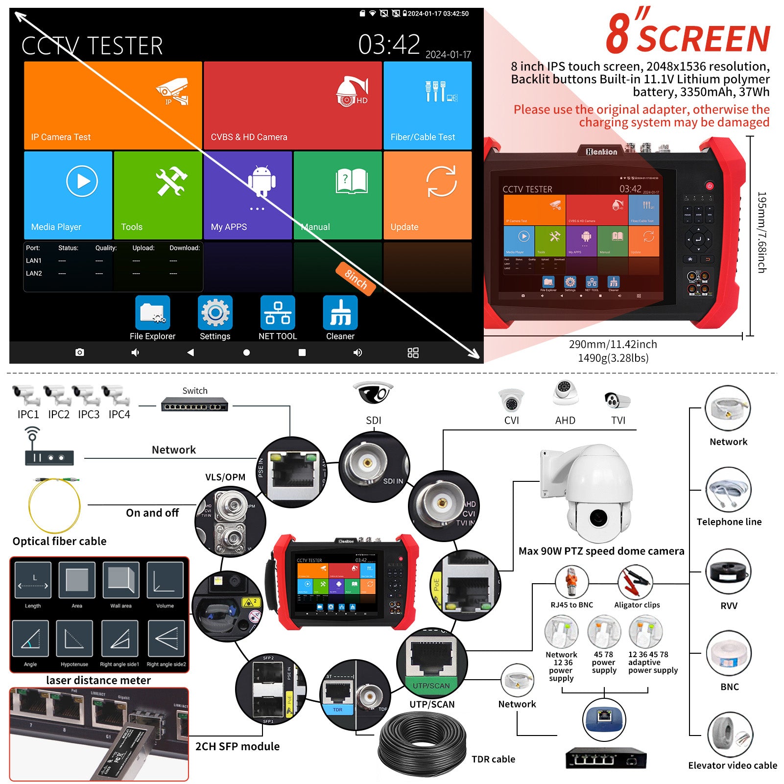 - support max 8K 32MP 8160*3616P 4K 12MP 4000*3000P IP Camera tester.
