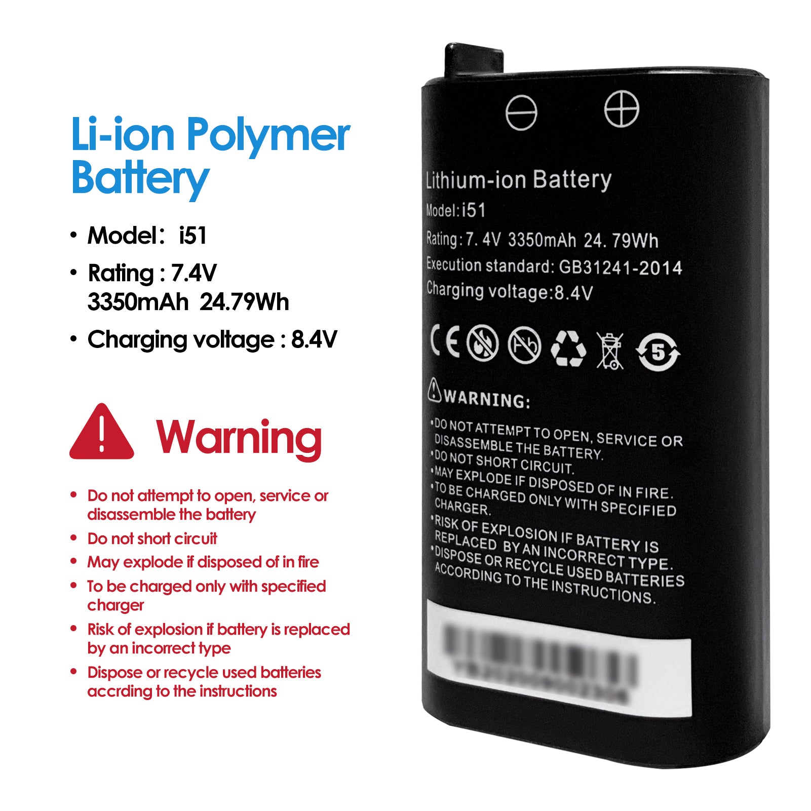 1, IPC-5000 Plus originally used i50 2600mAh battery, but it is also compatible with i51 3350mAh battery.