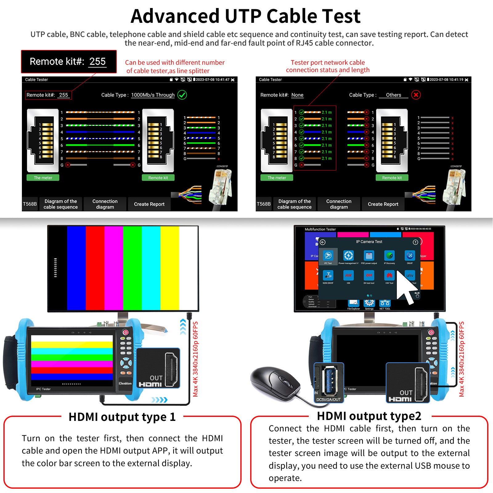 This is Henkion IPC-9800 Pro cost-effective 8K security surveillance camera tester. It is an essential tool for field technicians in the field of security cameras. Used for the installation and maintenance of IP network camera and CVBS camera. Testing HD CVI TVI AHD cameras is not supported.