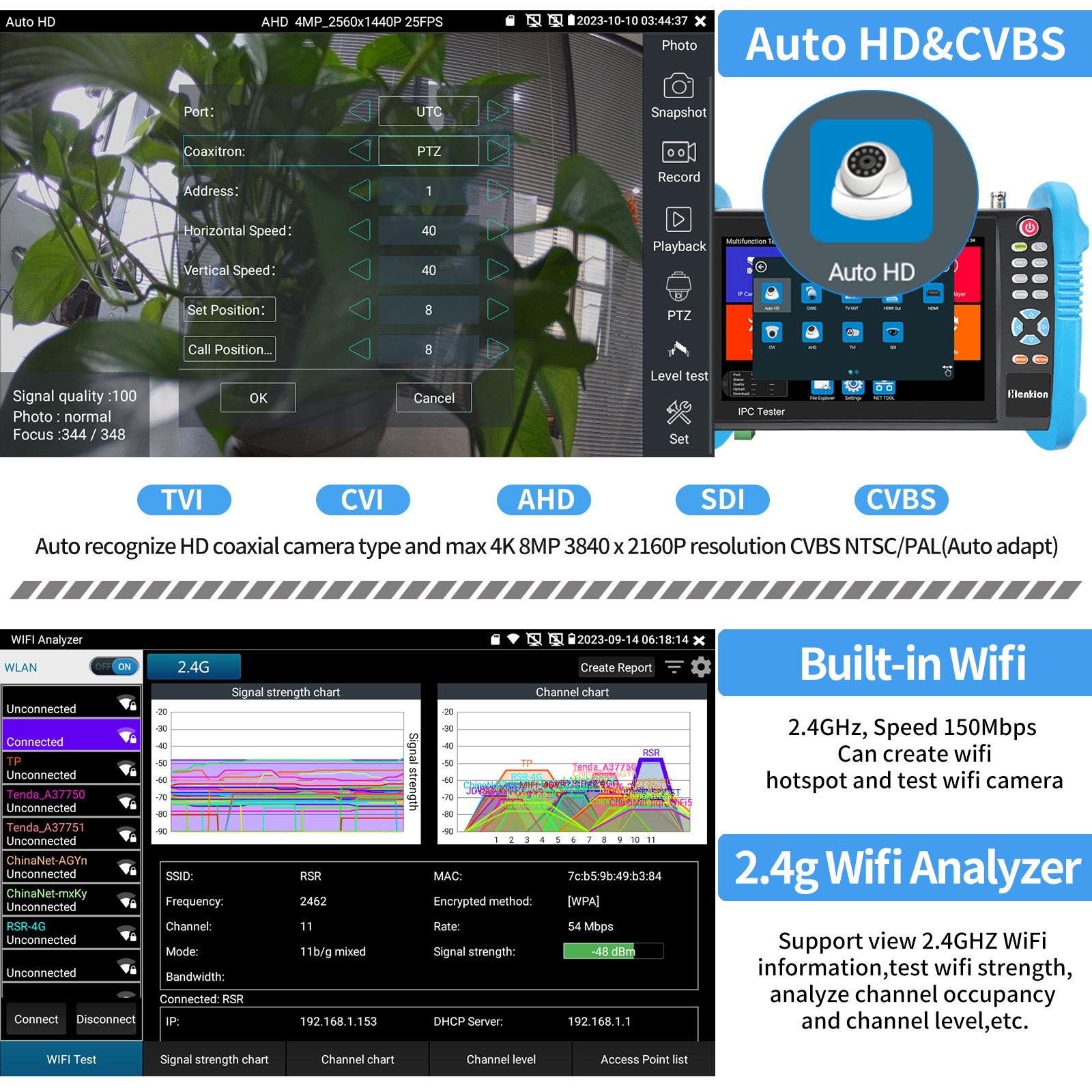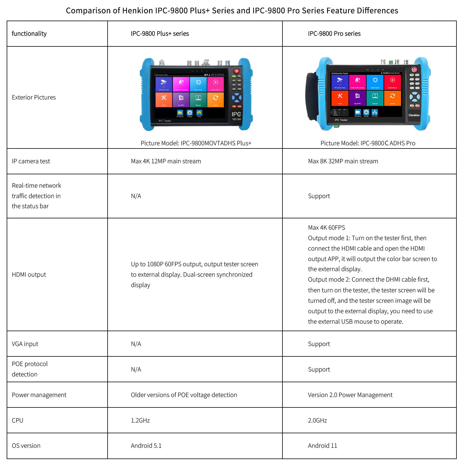 This is Henkion IPC-9800CADHS Pro cost-effective 8K security surveillance camera tester. It has the latest Android 11.0 version. It is an essential tool for field technicians in the field of security cameras. Used for the installation and maintenance of IP network camera HD CVI TVI AHD SDI camera and CVBS camera.