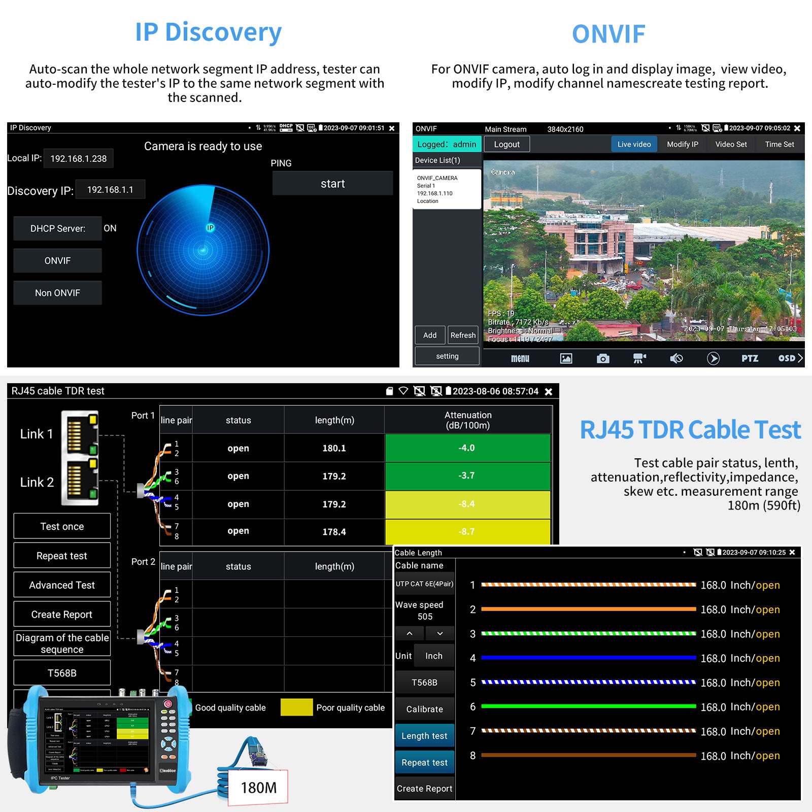 This is the most people buy the model of the IPC-9800 Pro series, it can meet the needs of the vast majority of tests. It can support the testing of up to 32MP IP cameras, max 8MP HD CVI TVI AHD SDI cameras, and CVBS cameras. Professional test app, POE, cable test, WiFi, power output, HDMI I/O, RS485, RJ45 TDR cable test are all available. Using the Android system, you can automatically update the APP after connecting to the Internet. You can continue to view the details to learn more.