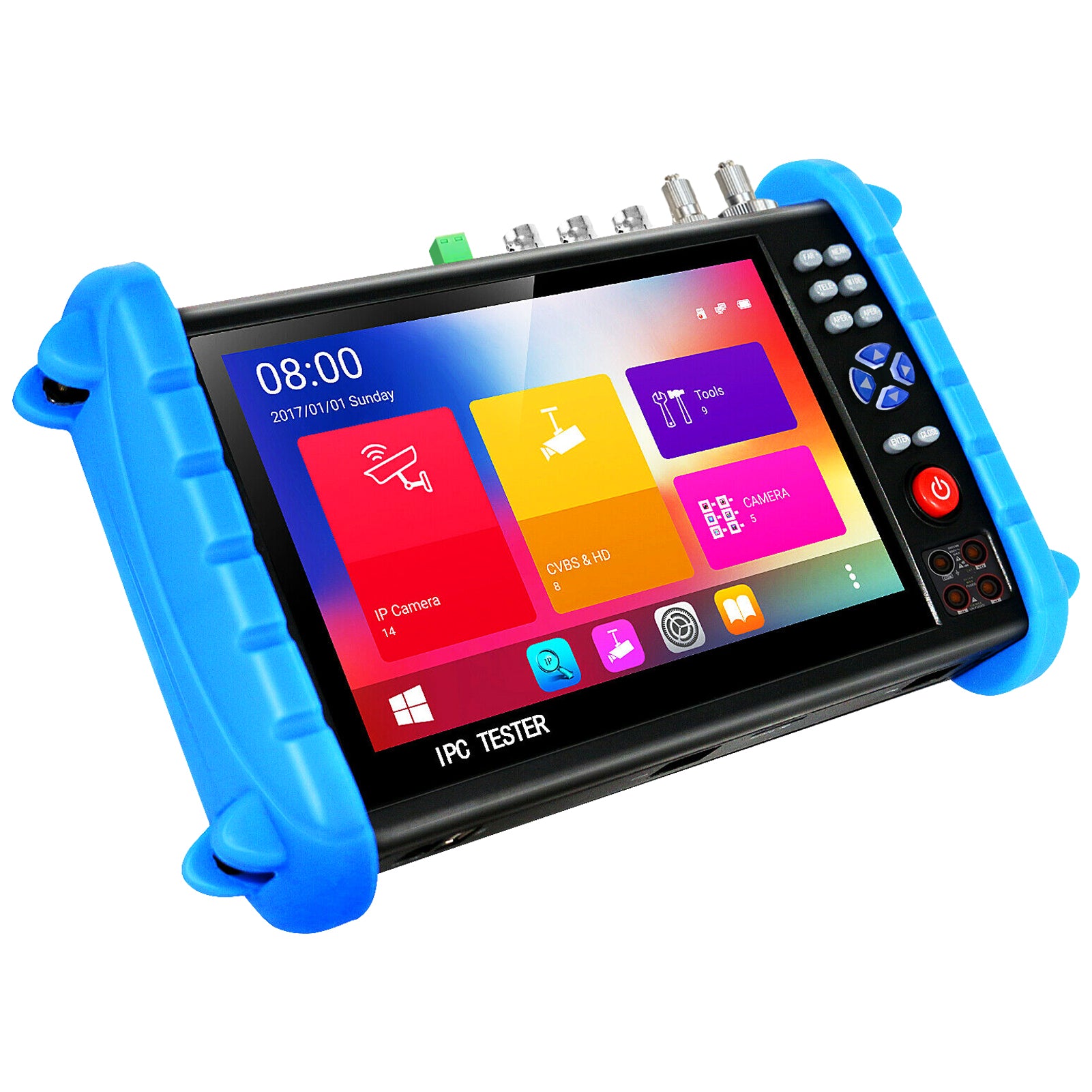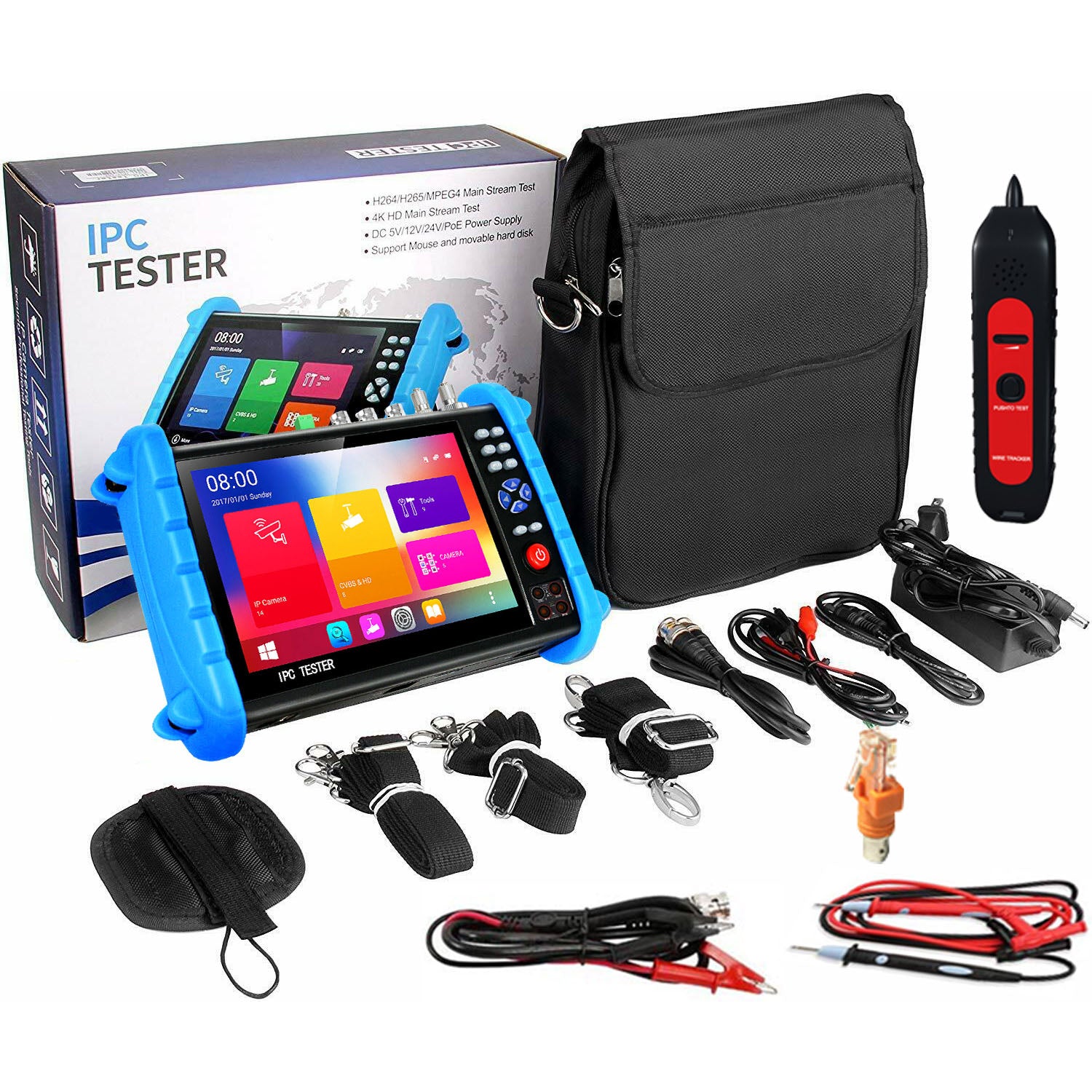 This is Henkion IPCXS-ACHIMNORTUV security camera tester. It is an essential tool for field technicians in the field of security cameras. Used for the installation and maintenance of IP network cameras and coaxial HD surveillance cameras and security systems.