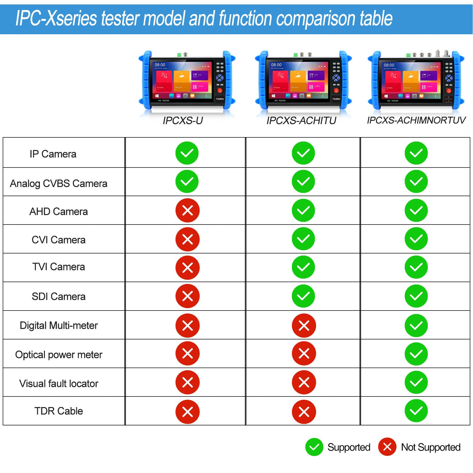 IPCXS-U uses 7 inch 1920x1200P high-definition touch screen, so the operation becomes simple and fast. Support max 12MP IP camera and CVBS camera test; Support RJ45 TDR cable test, POE, WIFI; DC 5V.2A/12V.3A/24V.1A power output; Multiple professional tests are built-in APP, use it to make your installation process simple and efficient. You can continue to view the details to learn more.