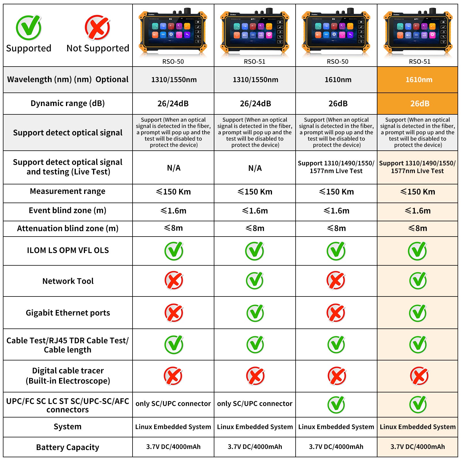 | Support detect optical signal | N/A | Support (When an optical signal is detected in the fiber, a prompt will pop up and the test will be disabled to protect the device) | N/A |