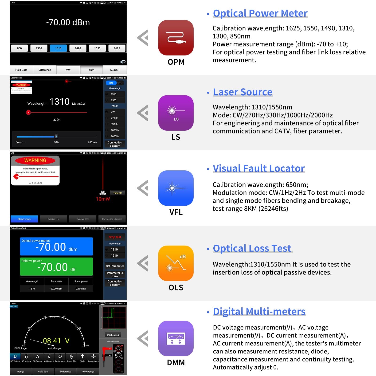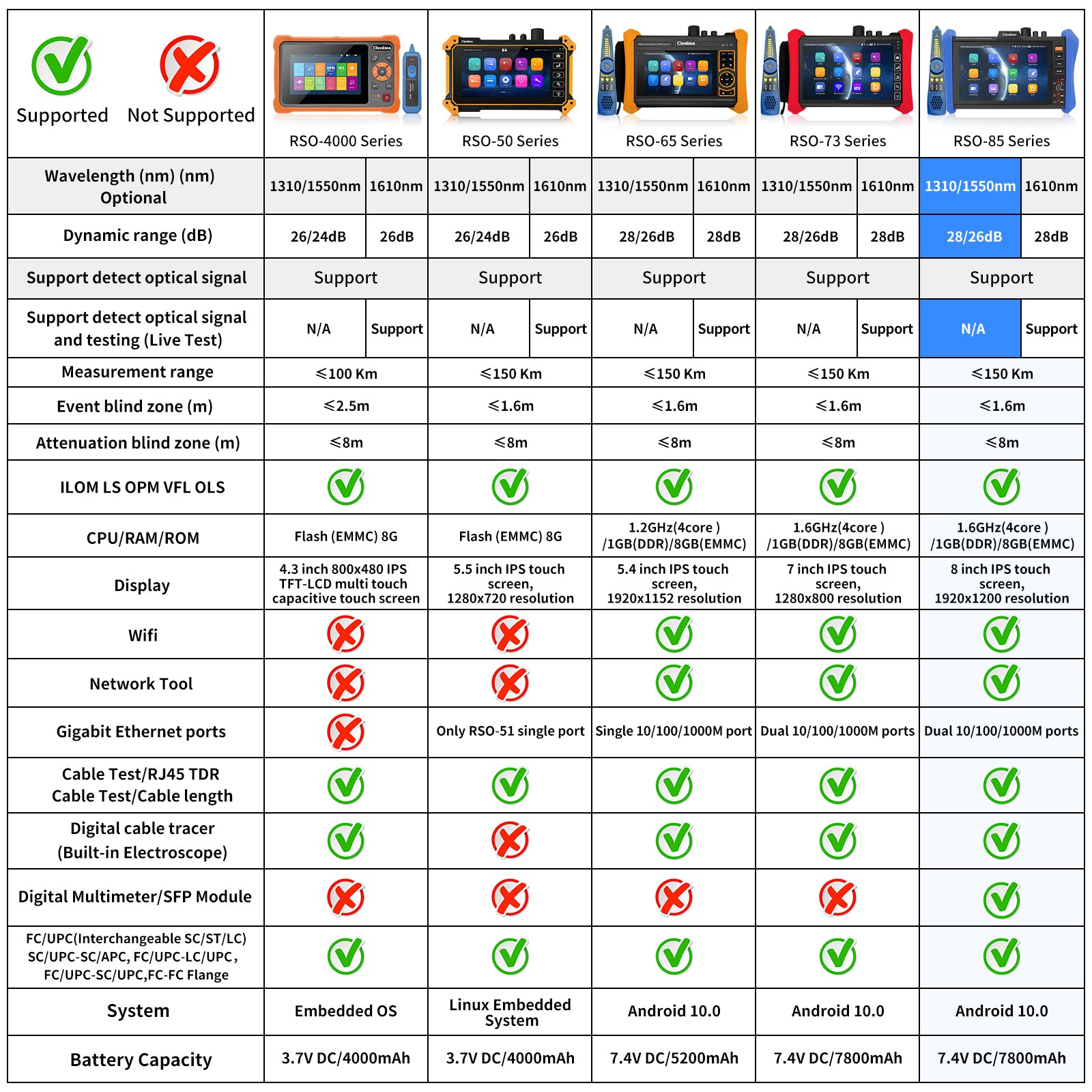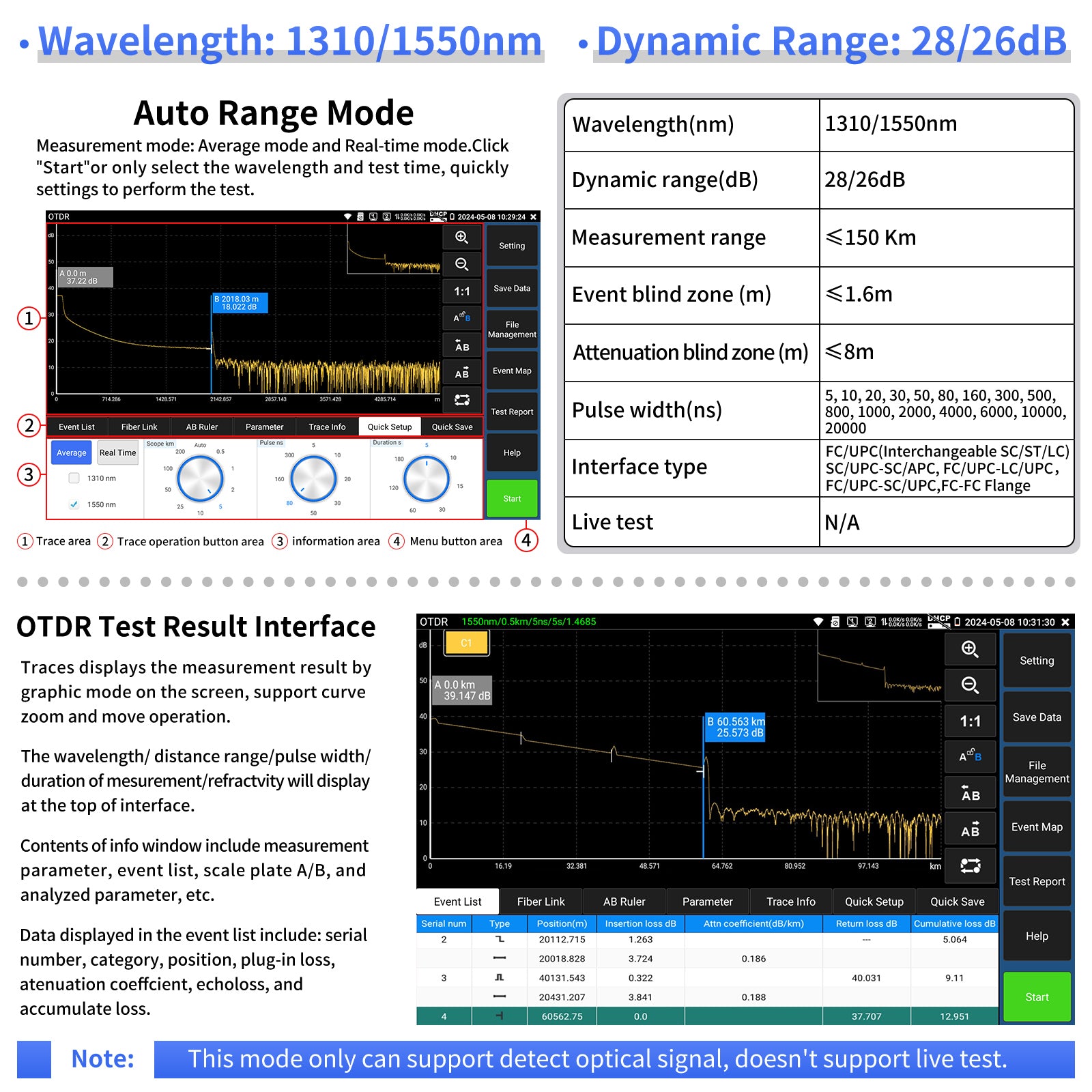 | Support detect optical signal | Support (When an optical signal is detected in the fiber, a prompt will pop up and the test will be disabled to protect the device) | N/A | |||||