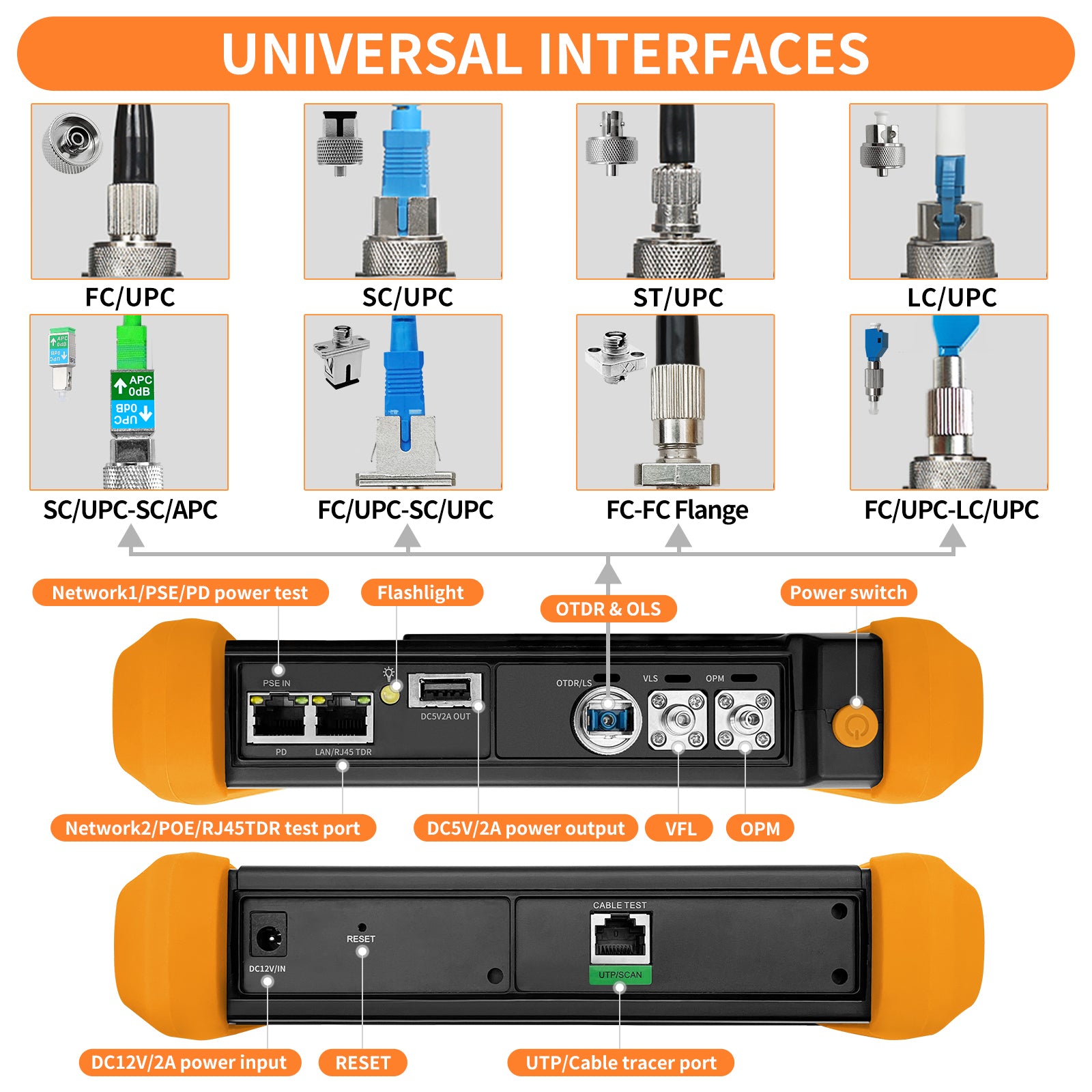 | Interface type | SC-UPC, Interchangeable LC/FC/ST | ||||||