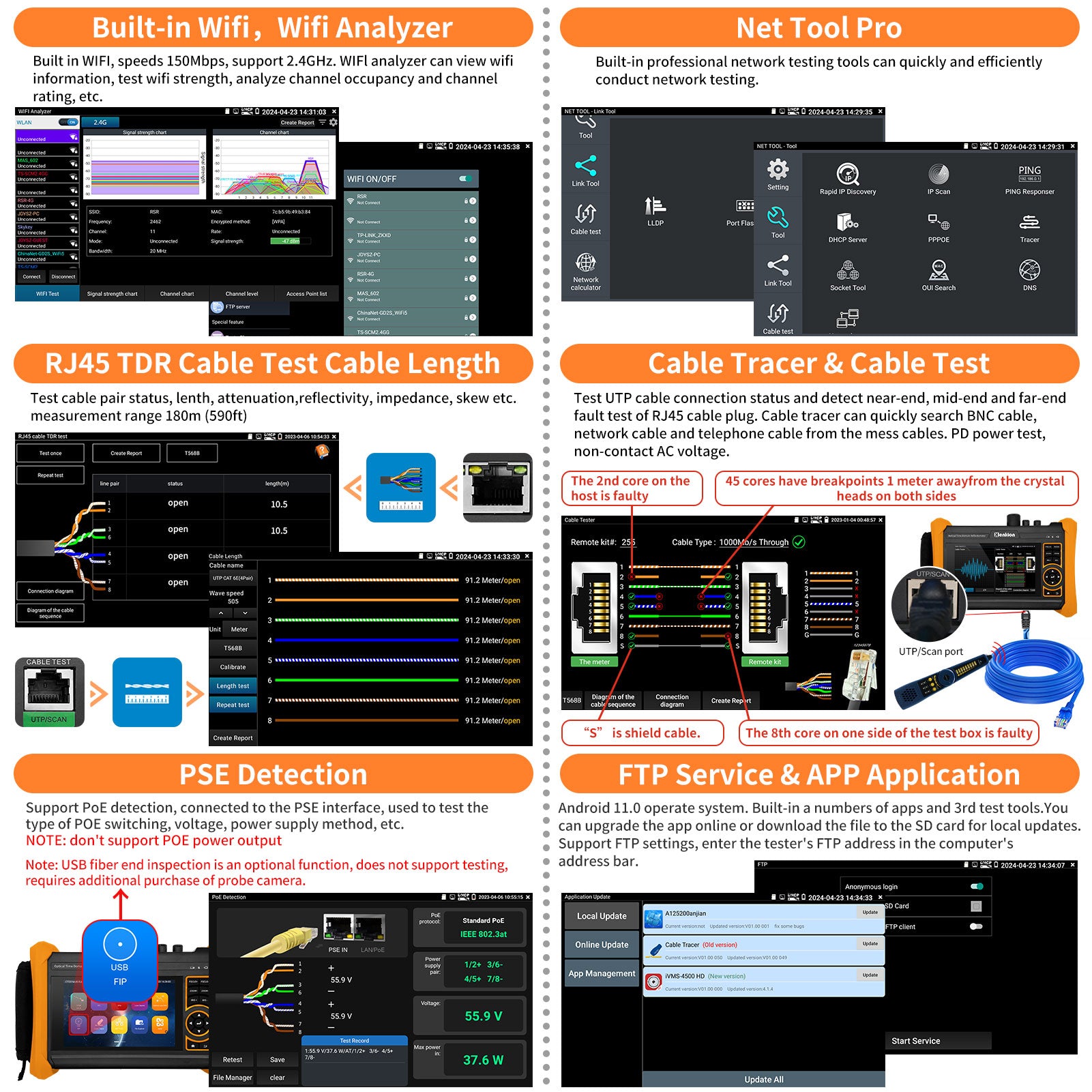 | Network test | IP address scanning, Link monitor, port flashing, Ping test, switch port LLDP detection, PPPOE, DHCP server, FTP file management | ||||||